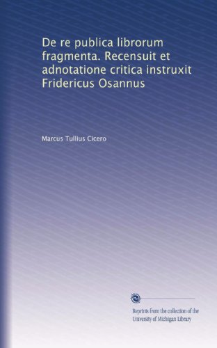 De re publica librorum fragmenta. Recensuit et adnotatione critica instruxit Fridericus Osannus (Latin Edition), by Marcus Tullius Cicero Kindle