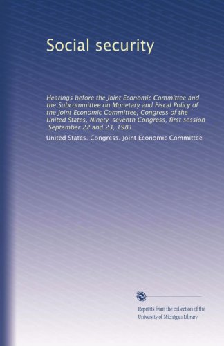See all customer reviews...Social security: Hearings before the Joint Economic Committee and the Subcommittee on Monetary and Fiscal Policy of the Joint Economic Comm PDF
